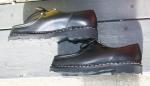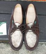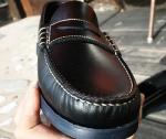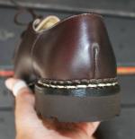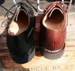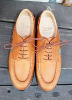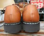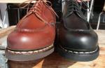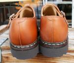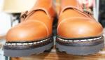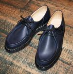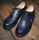 MICHAEL/ミカエル.LISSE NUIT(Paraboot)ONE COL(NAVY.) 使用革 Lisse Leather(リス・レザー) 製法 ノルヴェイジャン製法 ソール MARCHE SOLE(マルシェソール) SIZE 39. 40. 41. 42.(おおよその目安として,6. 7. 8. 9.) MADE IN FRANCE \65000+TAX 今現在SOLD OUT!ですが、サンプルがございますので 予約および取り寄せにも対応しております。 定番チロリアンシューズMICHAELは、PARABOOTのもっとも代表的な モデルのひとつです。 1920年代から展開しているMORZINE(モジーン) をベースに、モカ部分の仕様や踵の三本ラインの排除など、シンプルで 洗練されたデザインに昇華しました。 チロリアンと呼ばれる由縁は、 その昔スイス、チロル地方の山岳地帯の伝統的な装いにモカシンを 履いていた事に起源を発します。 このチロリアンは、アルプスの山で 生産を開始したPARABOOTが元祖である事は言うまでもありません。 特徴は、厚手の靴下を履いても難なく着脱できるように靴紐を緩める 履き口が大きく開く設計になっており、紐を緩めても必要以上に圧迫感を 与えないと言う、非常に伝統ある形ながら今現在にも通用する作りと 履き心地を実現しています。 是非とも店頭にて実物に足を入れて、サイズ感と質感の素晴らしさを 体験くださいませ♪ 尚、色欠け、サイズ欠けがあった場合でもリクエストいただければ、 御用意できる『色&サイズ』もございますのでお気軽にお問い合わせくださいませ。 (2015-09-01) |