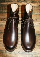 BLOIS-Caffe(Paraboot)ONE COL(Caffe/焦げ茶.) SIZE 6H. 7. 7H. 8. 8H.(25. 25H. 26. 26H. 27.cm) COW HIDE MADE IN FRANCE \65000+TAX 今現在SOLD OUT!ですが予約および取り寄せにも対応しております。 1988年にデビューしたチャッカーブーツモデル。 競技用ジョッパーブーツを「レースで固定して履けるように」という 顧客のリクエストでつくりだされました。 BLOIS/ブロワ.はチャッカーブーツと言っても 現在主流の4〜5インチのくるぶし丈ではなく、 足首をすっぽり覆う7インチ丈の長いブーツです。 これは原型が乗馬用であることから、 足首をしっかりホールドする目的でつくられており、 しっかりした深いブーツのような履き心地が特徴です。 靴紐を結ぶ外羽部分が一直線に下に向かって伸びており、 丸くラウンドなデザインでありながら履くと スタイリッシュに見える工夫がなされています。 アッパーには足馴染みの良さそうなオイルドレザーを使用し 存在感抜群の仕上がり。 履き心地にも定評のあるモデルで厚みを持たせた ラバーソールはクッション性・耐久力に優れ、 履き込む程に足に馴染んでいきます。 コバ部分には革を合わせたストームウェルト仕様でボリューム感もアップ。 完全防水ではありませんが雨にも比較的強いタフな作りも魅力。 ドレスカジュアルからちょっとしたフォーマルにも対応する万能モデルです。 尚、色欠け、サイズ欠けがあった場合でもリクエストいただければ、 御用意できる『色&サイズ』もございますのでお気軽にお問い合わせくださいませ。 (2015-09-01) |