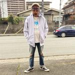 Ash-GreyがXLサイズを着用。