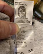 タグには、縫製職人の顔や