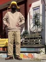 オンオフ両方で活躍するようにクルーネックの型をセレクト。
