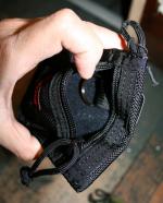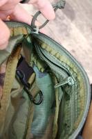 前面には薄いながらもファスナーポケットを備えてありますので、