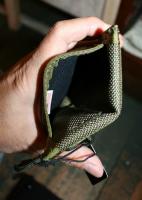 小さなポケットは、少しつまんでマチ幅を確保することにより定期などの