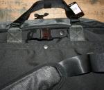 バッグ背面にトロリーとセットアップするためのバックルが付属し、