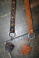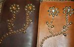 細目のレザーコードにブラス(真鍮)のスタッズを打ち込み、片側は