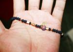 所々に真鍮のビーズ、そしてトンボ玉のアクセントを加えた